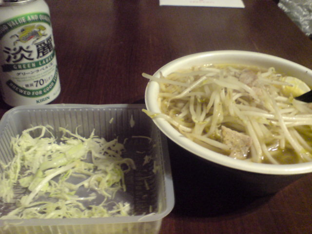 今日は遅番で、その後に打ち合わせが入っていたのですが、行きつけのラーメン店の営業時間に間に合わず、コンビニラーメンでした。が、モヤシてんこ盛り。モヤシLoveです