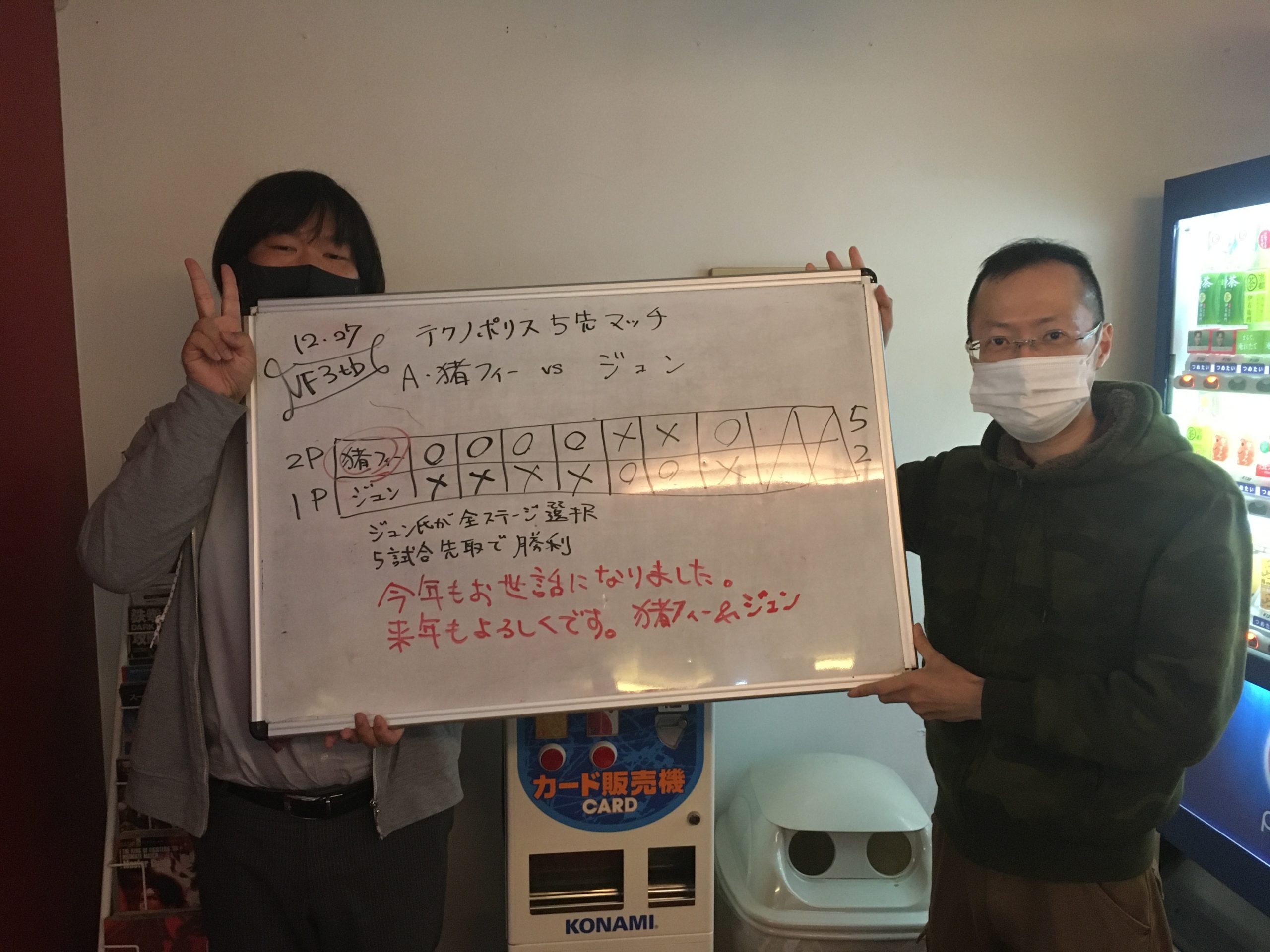 12/27 VF3tb 店舗大会0件 『VF3tb店舗大会』 開催日: 2020年12月27日(日):参加者 2名 優 勝: 猪フィー 様 2位 ジュン 様 ABOUT THE AUTHORwatanabeOTHERS OF THIS AUTHOR2026/03/08ゲーム大会結果ストリートファイター6 TYPE ARCADE ウィークリー大会2026/02/14ゲーム大会結果餓狼伝説スペシャル+真・侍魂 月例大会2026/02/08ゲーム大会結果英傑大戦 月例大会 2月watanabeの記事一覧