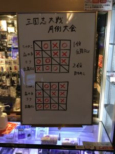 三国志大戦 月例大会 2023.1月0件 『三国志大戦 新春大会 2023 1月』 開催日: 2023年1月15日(日) 参加者:4名様 優勝: 乱舞RU 様 準優勝: たけのこ 様 大会の様子はこちらからご覧ください。https://youtu.be/nhihLvJSLCc ABOUT THE AUTHORMatsuiOTHERS OF THIS AUTHOR2025/04/29ゲーム大会結果ネオジオ3種月例大会 2025.4月2025/04/13ゲーム大会結果ストリートファイター6 TYPE ARCADE ウィークリー大会 04.132025/04/06ゲーム大会結果ストリートファイター6 TYPE ARCADE ウィークリー大会 04.06Matsuiの記事一覧