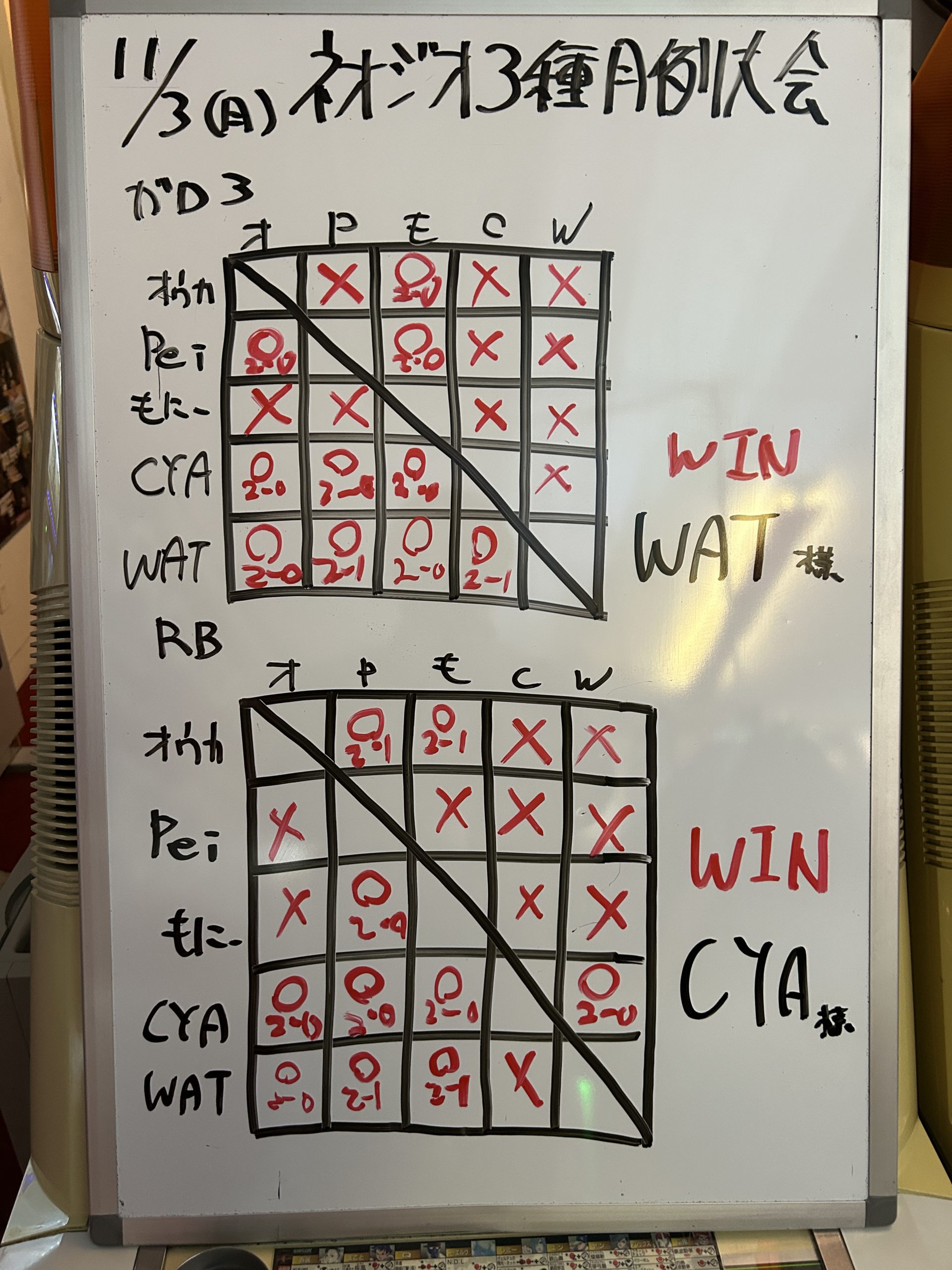 ネオジオ3種月例大会 11月0件 リアルバウト餓狼伝説 優勝:CYA 様 餓狼伝説3 優勝:WAT 様 サムライスピリッツ零SPECIAL 優勝:WAT 様 大会動画はこちらをご覧下さい。https://www.youtube.com/live/bwfo_ydxOU8?si=QFXdGWtJPQZJ9IBS ABOUT THE AUTHORranboテクノポリス主任してます。OTHERS OF THIS AUTHOR2026/01/10ゲーム大会結果餓狼伝説スペシャル+真・侍魂 月例大会2026/01/10ゲーム大会結果ストリートファイター6 TYPE ARCADE ウィークリー大会2025/12/28ゲーム大会結果ストリートファイター6 TYPE ARCADE ウィークリー大会ranboの記事一覧
