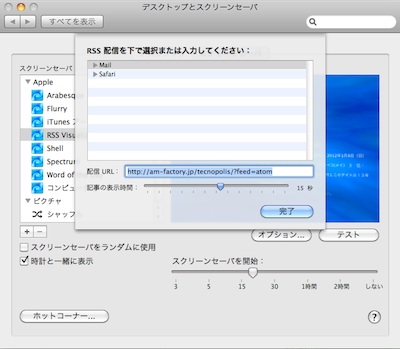 左のAppleタブ内のRSS Visualizerをダブルクリックして表示されたウインドウの