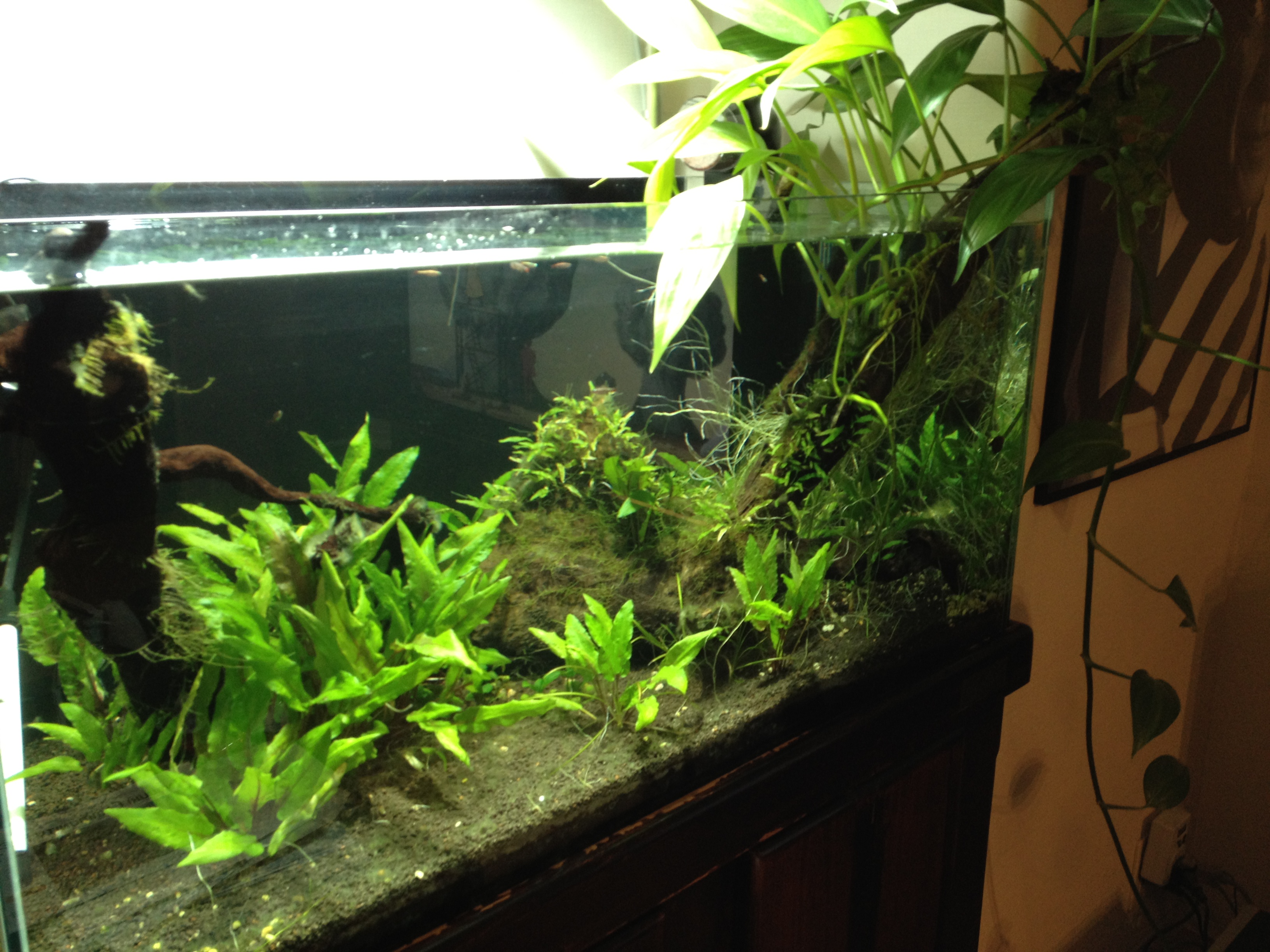 私も水槽自体は15年くらい前から維持していて、ネイチャーアクアリウムに転向して10年くらい経ちますが、最初は20cmくらいの水槽から初めて今では90cm水槽を維持しています。室内に緑の有る環境。