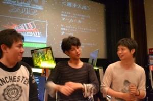 コメント:さて、店舗予選の熱気も冷めやらぬ中、ブロック決勝開幕です。カプコサーカス新潟東店代表「マームール/美鶴」アミューズメントスクエアチャンス笹口店代表「キングKAZ/真田」ゲームセンターテクノポリス代表「ナーベ/ラビリス」代表3名による、巴戦を開催しました。何と!今回の巴戦3名共に同一結果と成った為に、再試合を行う事に成りました。まず1回戦「ナーベvsマームール」まずは手堅くナーベラビリスが1勝。2回戦は「マームールvsキングKAZ」この2人は、カプコサーカス新潟東店の店舗予選決勝の顔合わせ前回は、マームールの勝利でしたが、キングKAZの気合いの入った攻めでリベンジ達成。3回戦「ナーベvsキングKAZ」これに勝ったプレイヤーが青キップ獲得と成ります。両者共に相手の動きを詠んでの立ち回り、しかし青キップ獲得への執念が優った、キングKAZの優勝!青キップ獲得おめでとうございます。また、店舗予選並びにブロック決勝と長時間に渡り、観戦や応援そして参加頂いた皆様有り難うございました。ブロック決勝の動画は、店舗または、ユーストリーム(テクノポリス)てご覧頂けます。