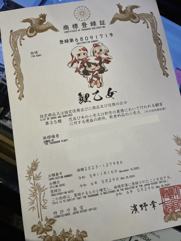 1年ほど前から申請していた商標登録がついに完了いたしました。