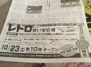 <お仕事事例>柏崎ゲーセン「レトロ」さんの新聞広告などをデザインさせていただきました